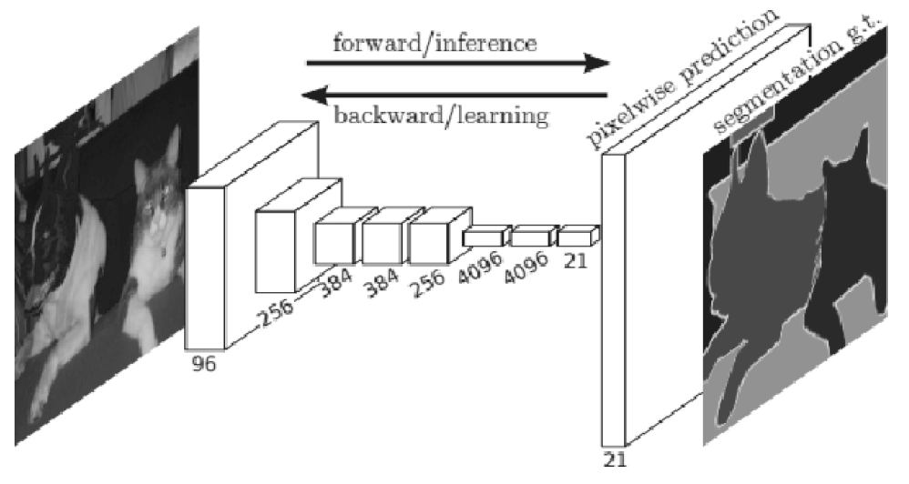 FCN(Fully Convolutional Network)는 단 한 번의 forward 처리로 모든 픽셀의 클래스를 분류해주는 기법이다.(그림 8-19}