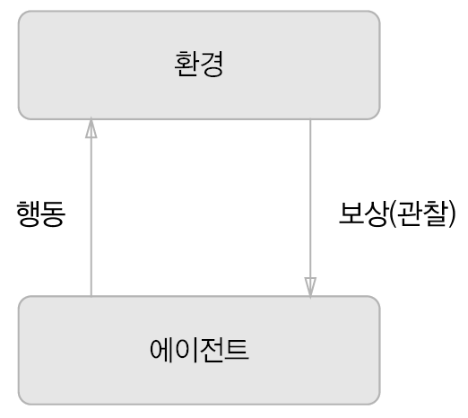 강화학습(reinforcement learning)은 에이전트라는 것이 환경에 맞게 행동을 선택하고, 그 행동에 의해서 환경이 변한다는 기본적인 틀을 가지고 있다. 환경이 변화하면 에이전트는 어떠한 보상을 얻는다. 강화 학습의 목적은 이러한 보상을 더 나은 쪽으로 받도록 에이전트의 행동 지침을 바로잡는 것이다.(그림 8-25)