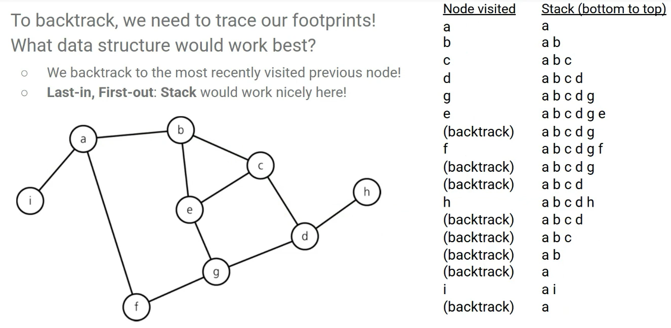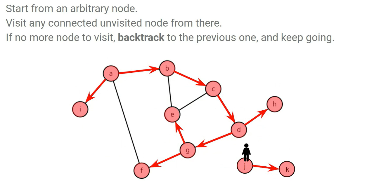 - 더 이상 갈 정점이 없다면 바로 직전에 왔던 정점으로 되돌아감 (Backtrack)