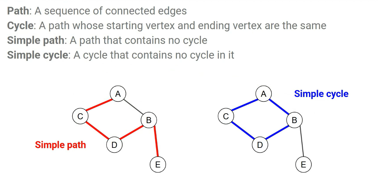 - Simple path: 정점을 중복해서 지나지 않는 경로