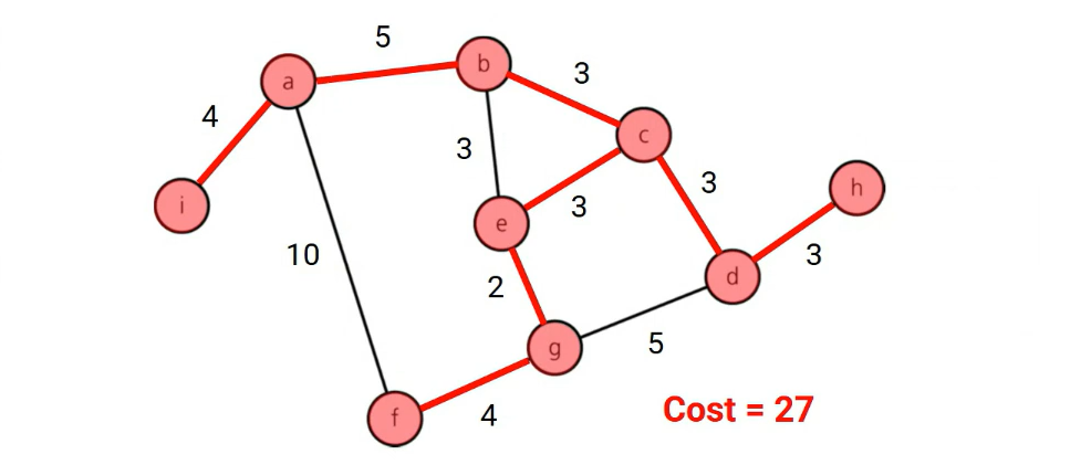 - 현재 정점과 인접한 정점을 잇는 간선들 중에서 가장 가중치가 작은 간선을 하나 고른다.