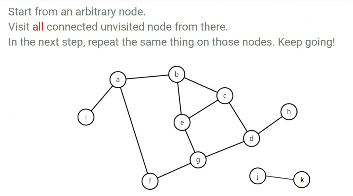 - 임의의 시작 정점을 큐에 넣고 방문 표시