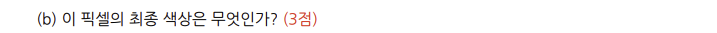 - 알파 블렌딩 공식 $C = \alpha \cdot c + (1-\alpha) \cdot C_{background}$ 를 적용하여 계산한다. (공란인 초기 배경색은 편의상 0.0으로 가정한다.)